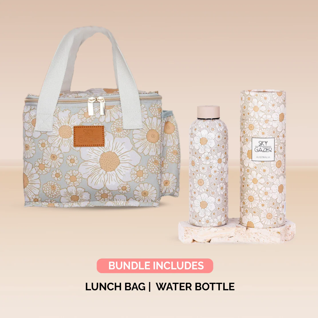 Lunch Bag featuring: Water Resistant fabric, PEVA lined and side water bottle pocket (W28cm x D14cm x H19cm)