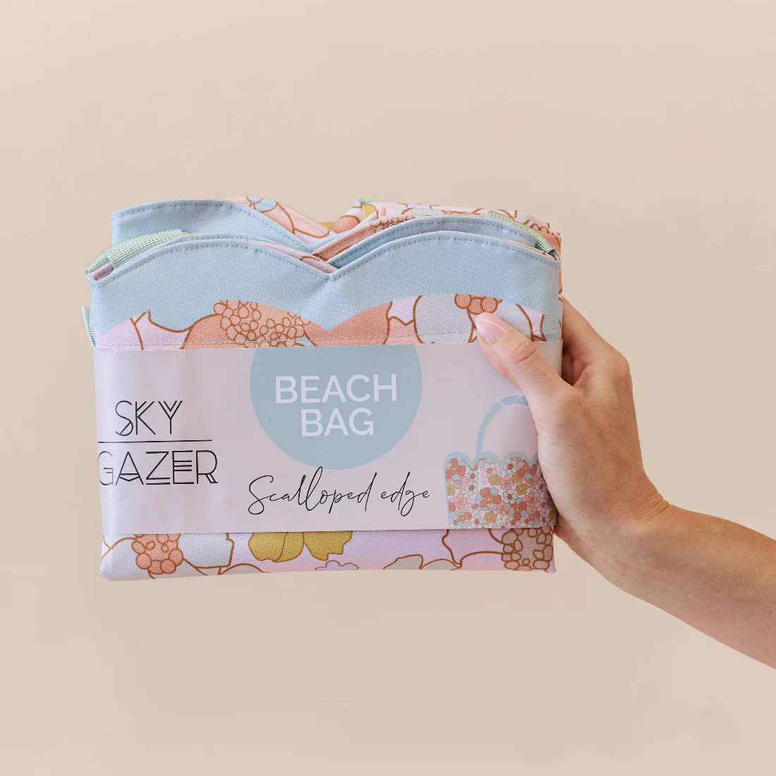 -70%Scalloped Beach Bag- Floral Azure—