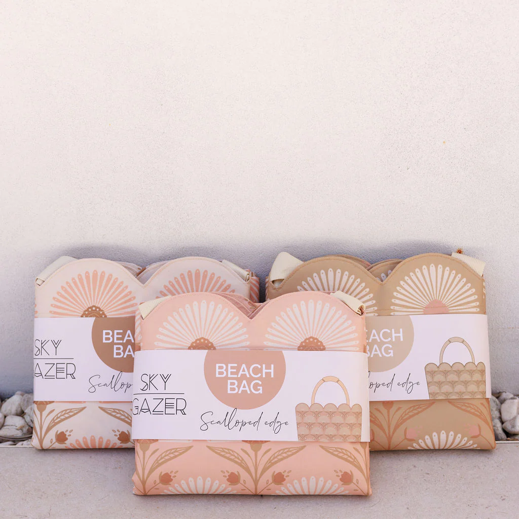 Our beautiful, scalloped beach bags. Functional and stunning!